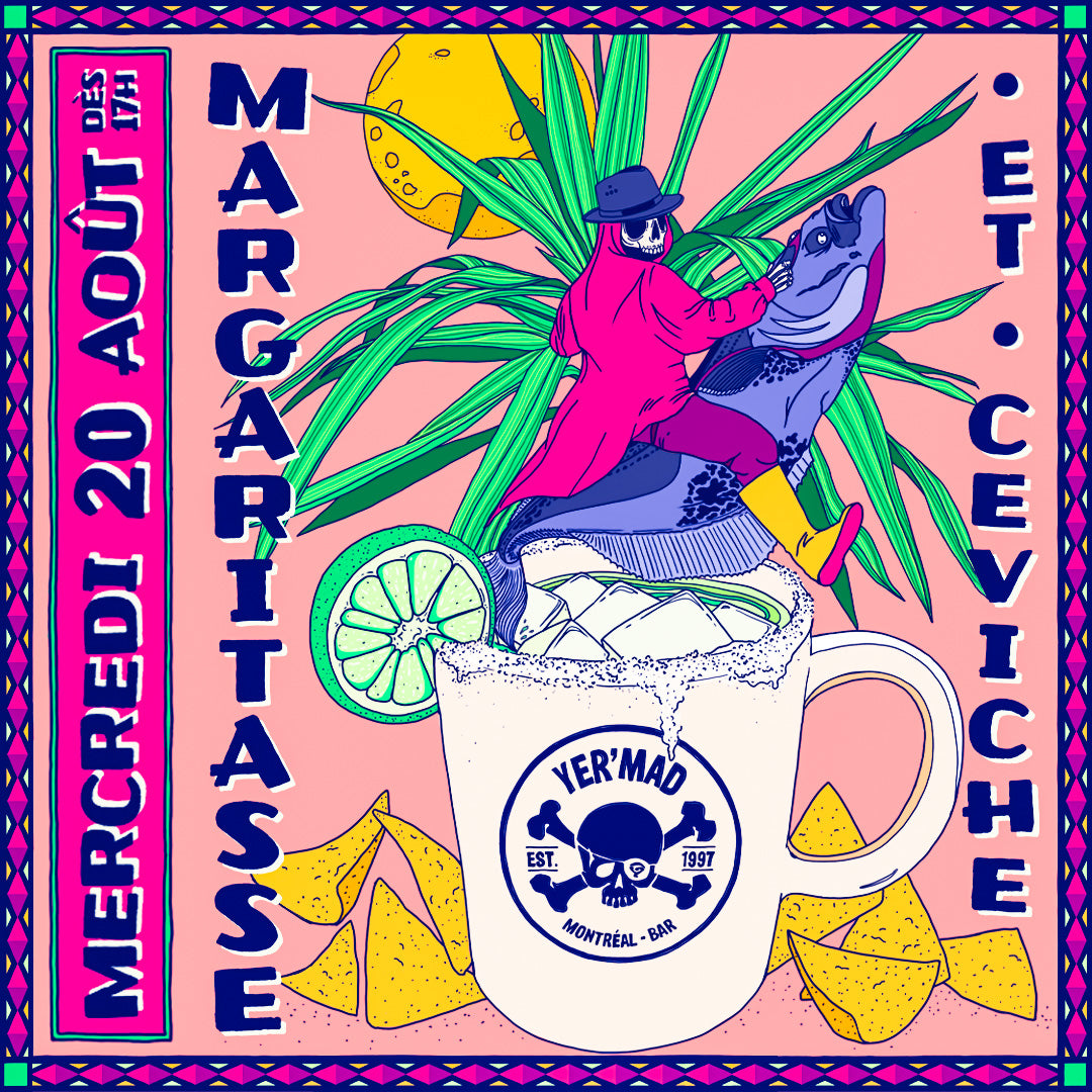 C’est l’été! Y fait beau! Y fait chaud! Bonnes excuses pour déguster un Ceviche frais et nos légendaires Margaritasses!